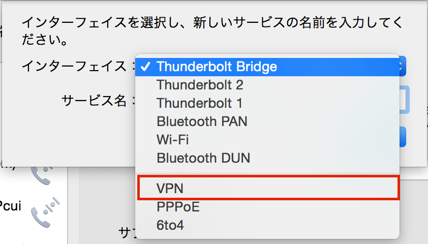 インターフェイスで「VPN」を選択します。