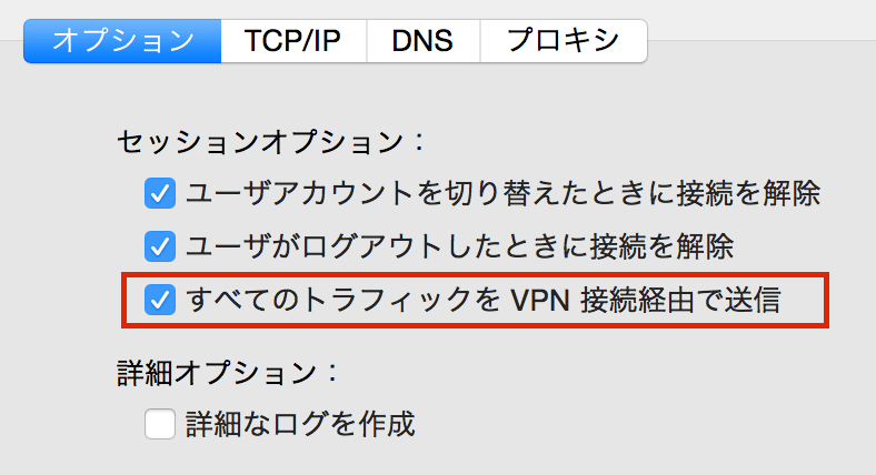 「すべてのトラフィックをVPN接続経由で送信」にチェックを入れ閉じます。