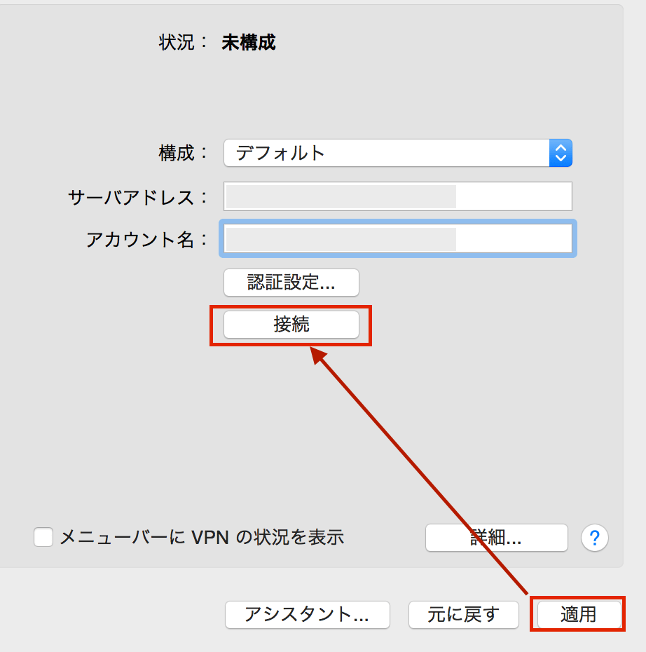 最後に適用し接続を押せば OK!