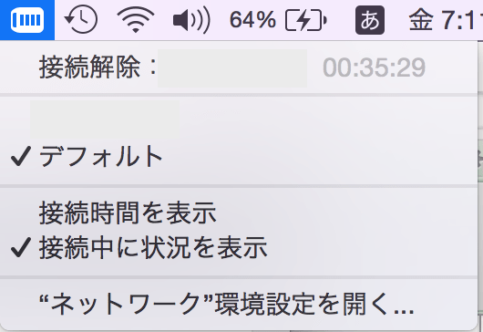 また、高い頻度で使う人は「メニューバーにVPNの状況を表示」にチェックを入れておくと、便利です。